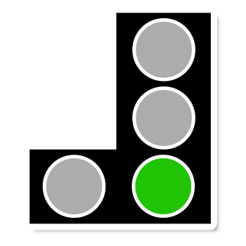 At some junctions, there may be separate signals for different lanes. These are called 'filter' lights. They're designed to help traffic flow at major junctions. Make sure that you're in the correct lane and proceed if the way is clear and the green light shows for your lane.