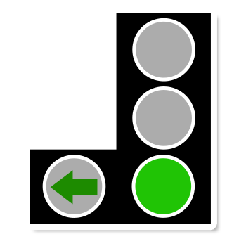 Q #168 - You're in the left-hand lane at traffic lights, waiting to turn left. At which of these traffic lights mustn't you move on?