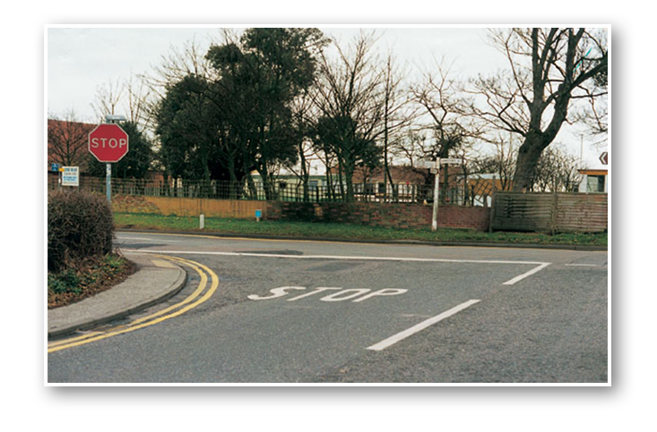 The 'stop' sign has been put here because the view into the main road is poor. You must stop because it won't be possible to take proper observation while you're moving.