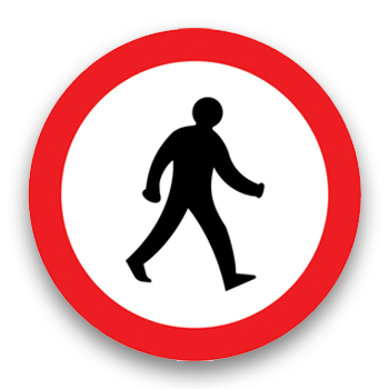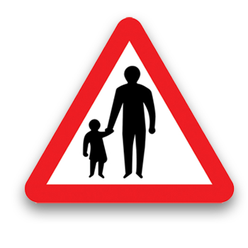 Always check the road signs. Triangular signs are warning signs: they inform you about hazards ahead and help you to anticipate any problems. There are a number of different signs showing pedestrians. Learn the meaning of each one.