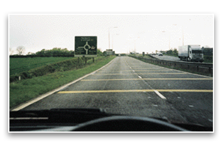 These lines are often found on the approach to a roundabout or a dangerous junction. They give you extra warning to adjust your speed. Look well ahead and do this in good time.
