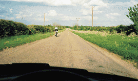 Allow the cyclist plenty of room in case they wobble or swerve around a pothole or raised drain. Look well ahead before you start to overtake, because you'll need to use all of the road. Look for entrances to fields where tractors or other farm machinery could be waiting to pull out.